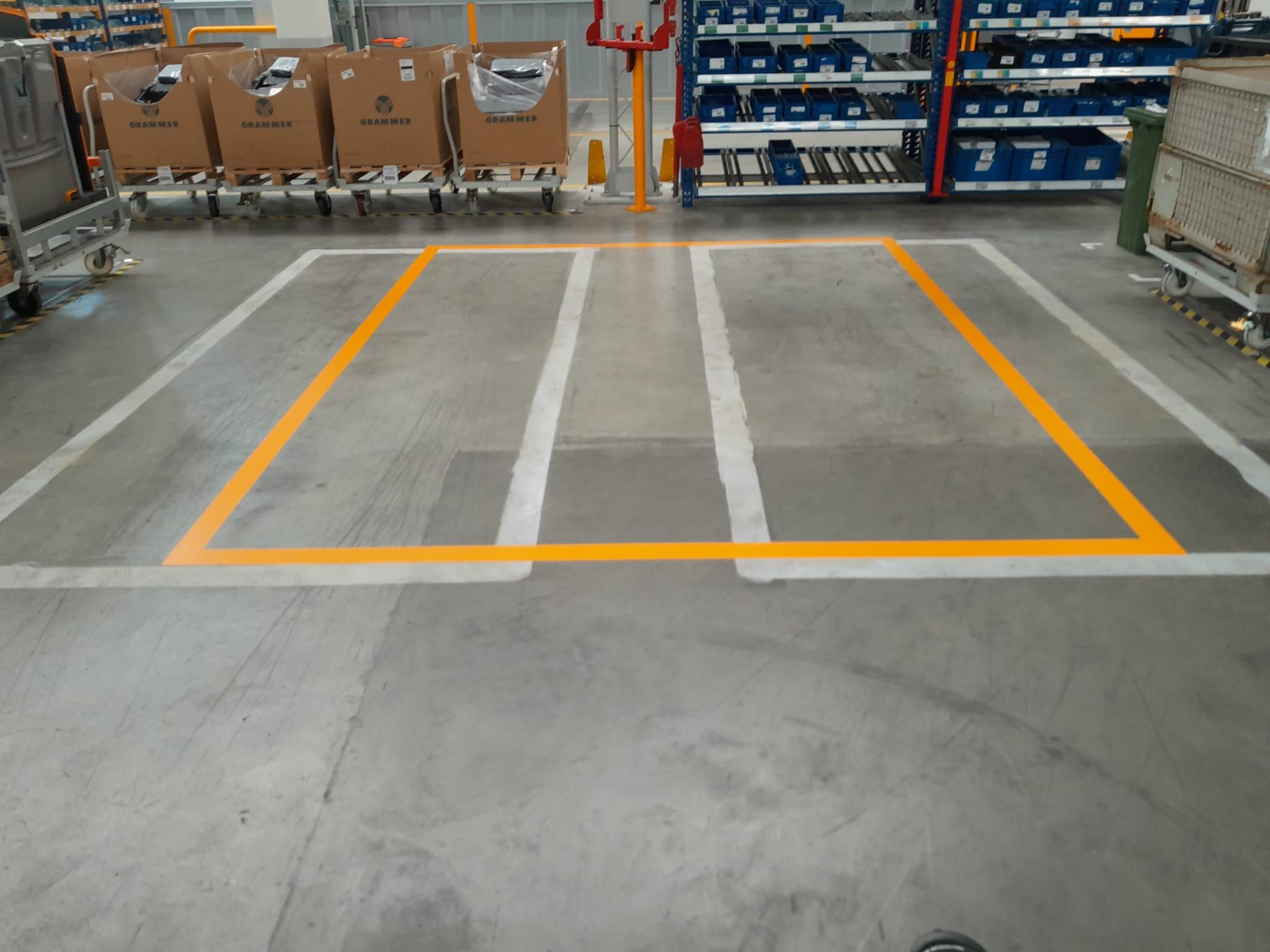 Rozsah:Zcela nové značení cest, manipulačních koridorů a paletových pozic